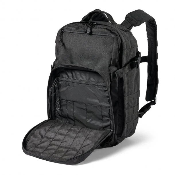 Fast-Tac 12 Taktisk Rygsæk 26L fra 5.11 er udviklet med mange brugbare organiseringslommer, stopper til fastgørelse og mindre rum til nemmere at holde styr på alle dine ting. Rygsækken er udstyret med ét stort hovedrum, en frontlomme og et sleeve til en 15″ computer.