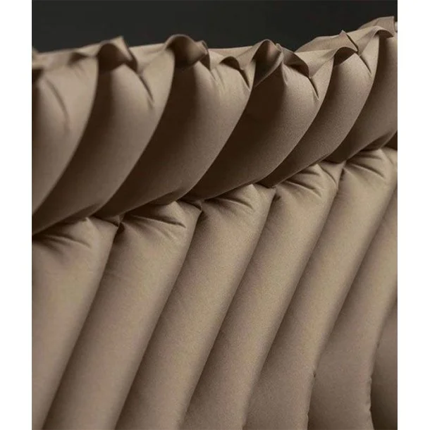 Liggeunderlaget har v-kar til luft og dynamiske sidegelænder, der modvirker at luften bevæger sig og dermed holder på varmen. Samtidig tilpasser luftkanalerne sig til din kropsform, dermed sørger for at du ligger komfortabelt – om du ligger på maven, siden eller ryggen.