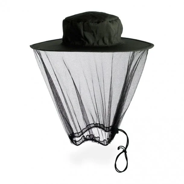 Myggenet med hat til beskyttelse af hovedet, hals og ansigt. Myggenettet kommer i fint sort mesh med 1001 huller pr. tomme, til beskyttelse af dit hoved, hals og ansigt når du befinder dig i naturen. Den er designet med hat og justerbar træksnor i bunden, så du har mulighed for at finde den perfekte pasform. Brug den i naturen når du ønsker at beskytte dig mod myg, og andre flyvende insekter.