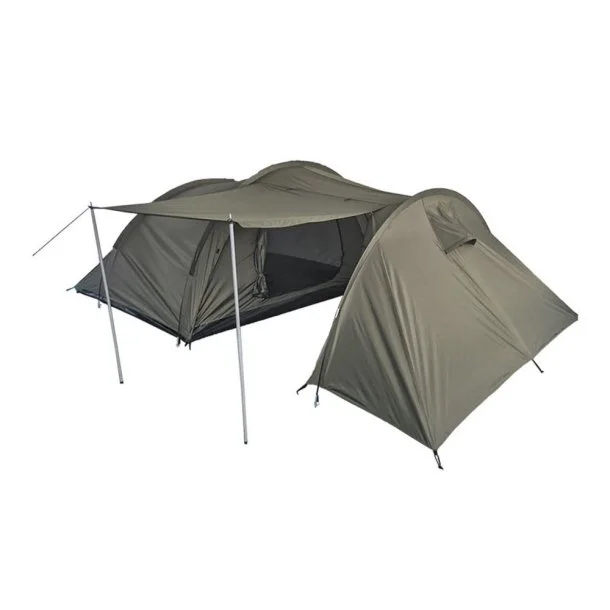 4-personers Telt Med Opbevaringsplads fra Mil-Tec er et særdeles rummeligt telt med en stor indgang mellem soverummet og opbevaringsrummet. Teltet rummer god plads til fire personer og deres medbragte bagage.