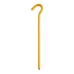 Den firkatende konstruktion gør pløkken utrolig holdbar og fast, hvor anti-vrid konstruktionen muliggør et sikkert greb i jordbunden hvilket stopper pløkken i at dreje rundt. Den store krog pløkken er udstyret, gør det muligt for det firkantede spyd at holde mange barduner i forskellige bredder og tykkelser. Den klare gule farve giver pløkken en høj synlighed, således undgår man at pløkken forsvinder i græsset. Leveres i pakke med 6 stk.