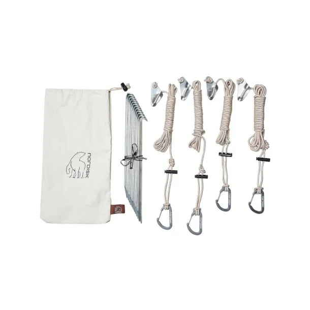 Tarpen kan nemt bruges på flere forskellige måder – herunder A-opsætning, diamant-opsætning eller som shelter med eller uden gulv og vindfang. På disse måder beskyttes du og dit medbragte grej mod regn og stærkt sollys – dog kræver det, at du sætter den stramt op, så den ikke løsner sig under kraftig blæsevejr. Til Kari 8 Bomuld Tarp fra Nordisk medfølger stærke stålstænger, V-stålpløkker samt bardun.