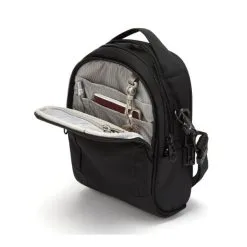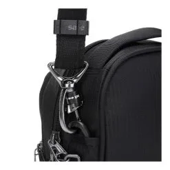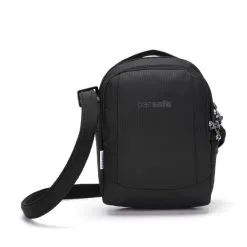 Den nye Metrosafe Recycled LS100 Skuldertaske fra Pacsafe er en anti-tyveri taske. For det første har den indbygget en RFID sikret lomme, der sikrer imod identitetstyveri fra plastikkort med chip (klik på billeder for at se mere om RFID). Tasken har stål-wire net, således den ikke kan skæres op med en kniv og lynlåse som kan klikkes sammen. Indvendigt har den store interne rum og er perfekt til de daglige ture på rejsen.