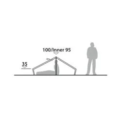 I inderteltet finder du en tørresnor, som kan fastgøres til oversejlet, hvorfor det bliver på plads, og når det bruges alene reduceres vægten også. Udvendig finder du lavtsiddende ventilationer, topventilationer ved døren og en tovejslynlås.