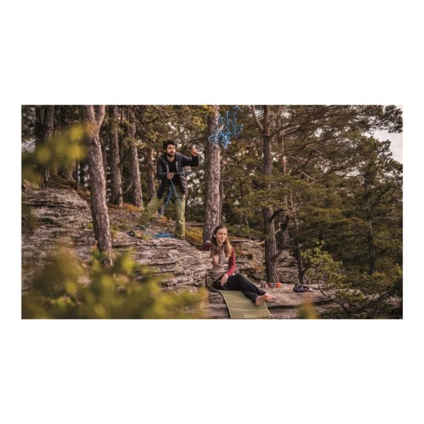 Komfortabelt skumunderlag som er nemt at have med på turen, da det kan foldes sammen og samtidigt har nogle fordybninger/forhøjninger, der passer ind i hinanden. Medfølgende får du nogle pakkestropper, så du kan spænde underlaget fast til din taske. Underlaget kan benyttes for sig selv eller i kombination med et liggeunderlag for ekstra komfort og varme.