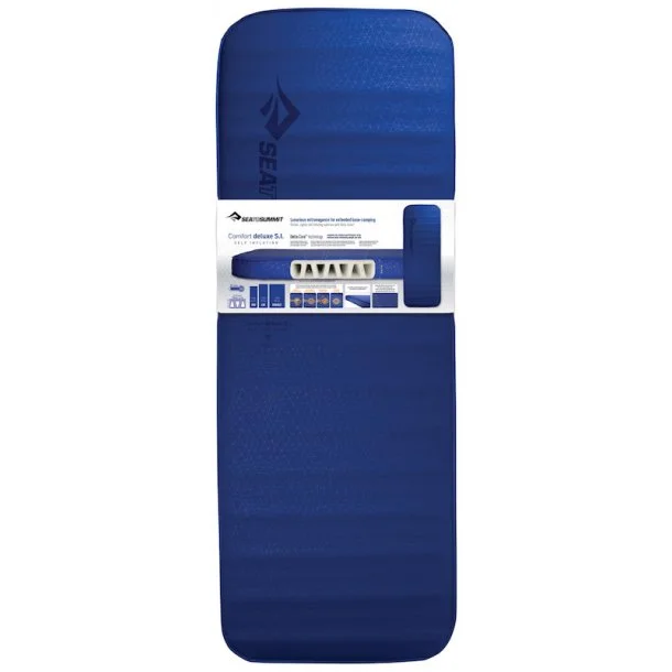 Comfort Deluxe Selvoppusteligt Liggeunderlag fra Sea to Summit har en højde på 10 cm, så det er ekstra komfortabelt at ligge på. Underlaget er fremstillet med patenteret Delta Core skum med horisontale lufkanaler. Det minimerer både varmetab og risiko for delaminering samt giver en reduktion i vægt på 40 pct. Overfladen er fremstillet i 30D Stretch polyester med anti-skrid print.