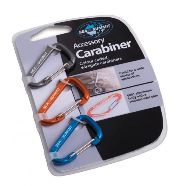 Praktisk og uundværlig pakke med tre forskellige karabiner i forskellige farver. Fremstillet i aluminium(6061) og lås i stål.