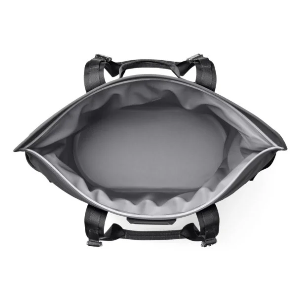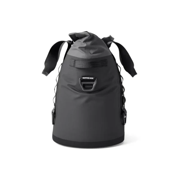 Hopper M30 Soft Cooler Køletaske Charcoal fra YETI er perfekt til endags turene, hvor det skal være nemt og bekvemt at have mad og drikke med. Rygsækken kan f.eks. have 42 dåser eller 14,5 kg. is i sig. Derudover er den kompatibel med vinflasker, som snildt kan stå oprejst.